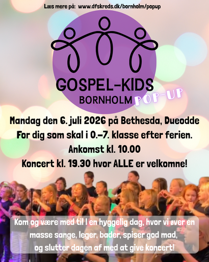 Vi skal synge og danse, lege, hygge og bade, og så slutter vi dagen af med et brag af en koncert med live band og fest! Alle er velkomne dér kl.19.30